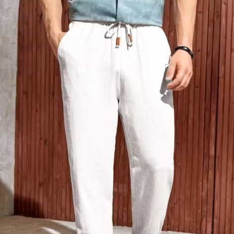 Nuevos pantalones de algodón y lino para hombre, pantalones casuales ligeros transpirables, Pantalones rectos cómodos con cordón, fabricante al por mayor