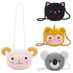 Bolso cruzado de gato de oso de dibujos animados de moda-Monedero de felpa para niños para niñas, Mini bolso de hombro con correa ajustable
