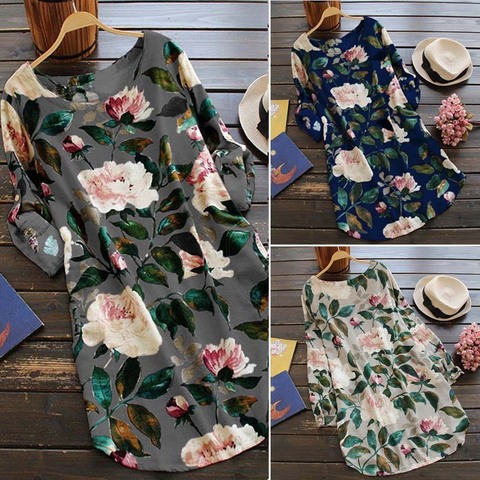 Vestido corto femenino de verano con estampado Floral y manga larga, minivestido Vintage para mujer, con estampado Floral, talla grande